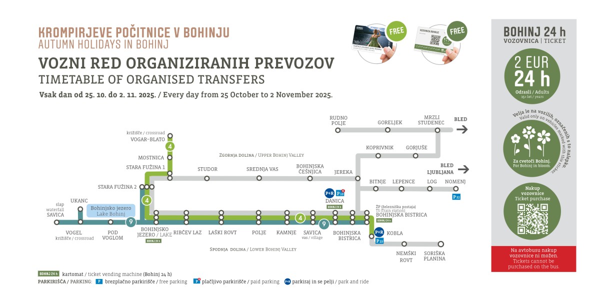 - Velja: 24 ur od prve aktivacije na avtobusu (samo na vozilih označenih z nalepko “Za cvetoči Bohinj”).